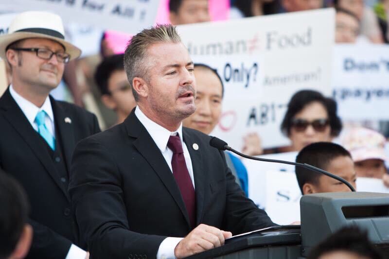 而Travis Allen呢?华裔第一拨去州府阻击亚裔细分听证会的几位都记得这位共和党人和他们一起站在会议室外面抗议的情景,众议院讨论时他也挺身而出发言抗议种族歧视。8/10/2016集会抗议亚裔细分法时他出席集会发言,接受记者采访,勇敢无畏,无条件支持我们的抗争。