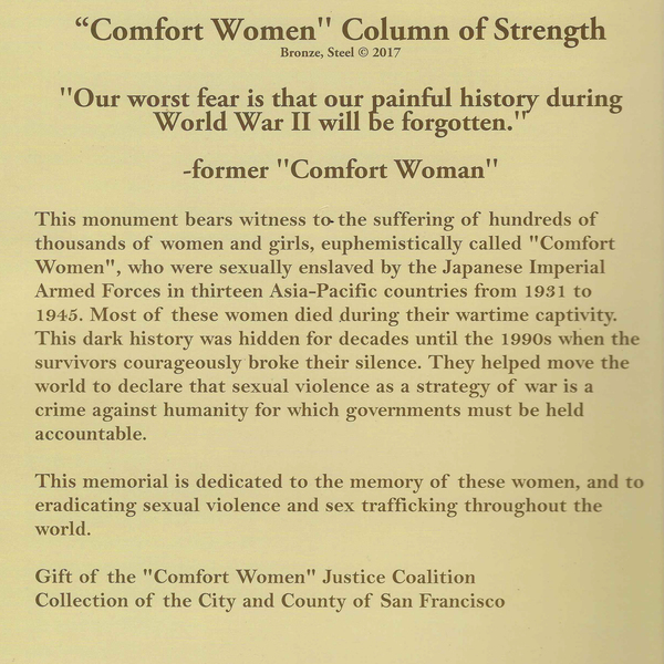 “Comfort Women”Memorial San Francisco 🌟Information 4.0/1 http://www.weidb.co/p115801 获取作者更多文章 上一页 下一页 1. NBC BAYAREA SAN FRANCISCO(75325) 2. 2020 latest voter information (78096) 3. Flare-up between SF and Chinese merchants reveals Muni’s inadequate translation services(91622) 4. Charity Cultural Services Center(68934) 5. SF-Shanghai Association helped the family of Jessie Liu(68038) 6. “Comfort Women”Memorial San Francisco(82674) 7. Comfort Women" Memorial Unveiling Ceremony(86755) 8. SSA(99390) 9. UCCA Inc providing the optimized preference for you(106765) 10. Information (94826) 上一页 下一页