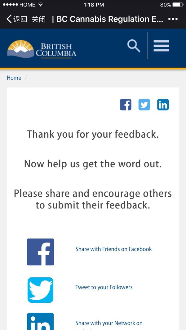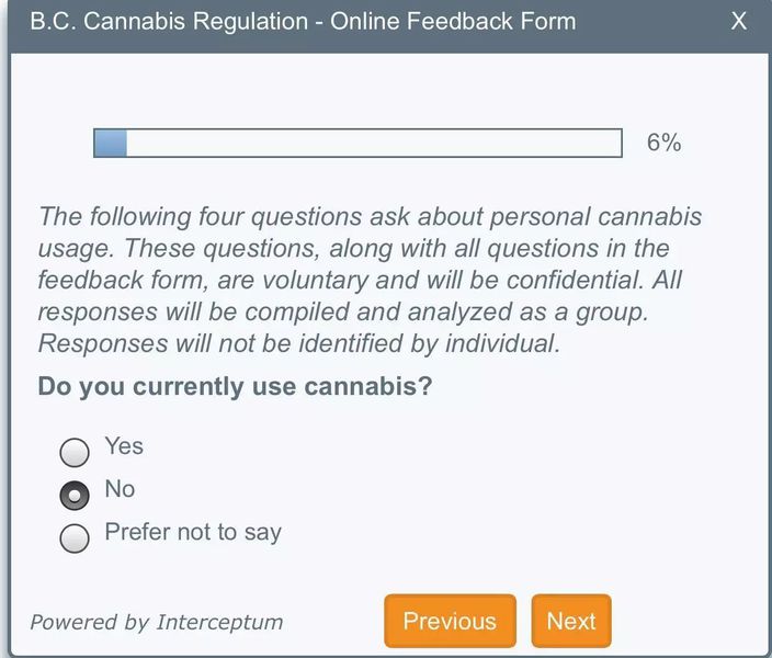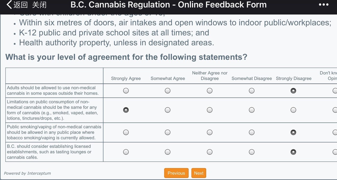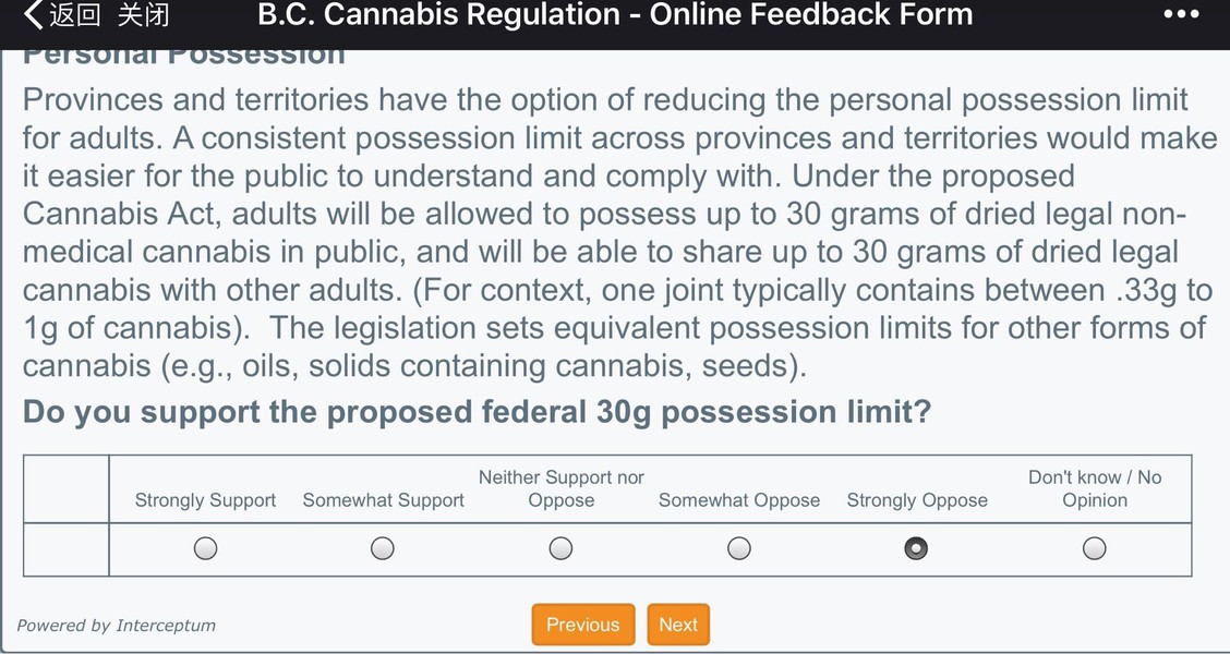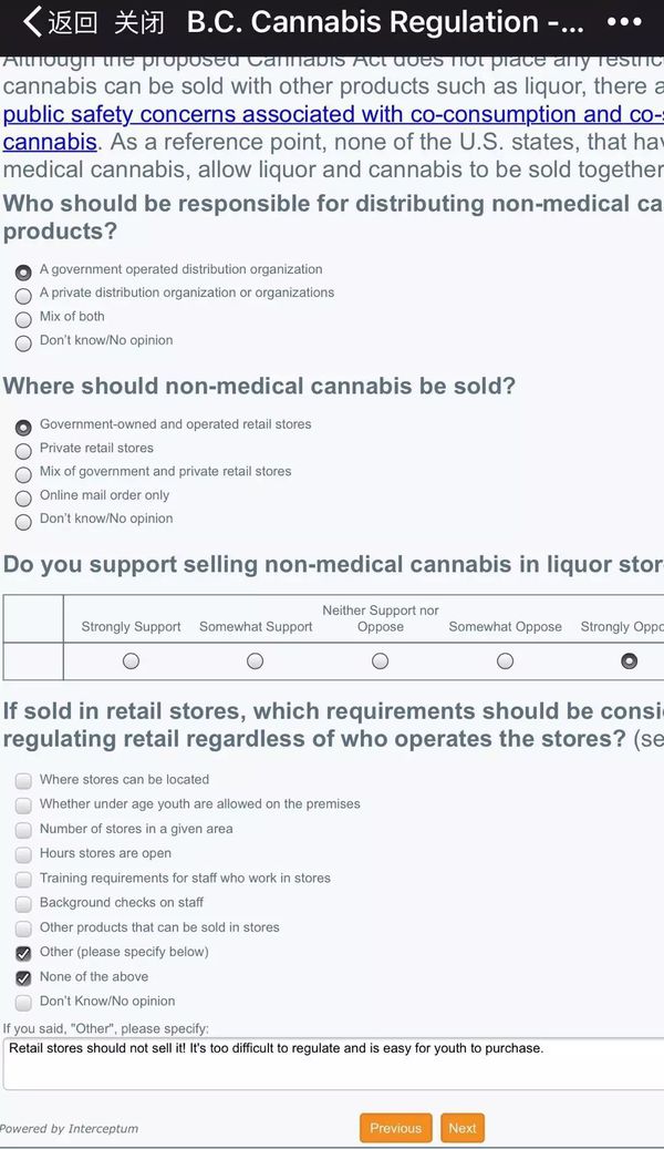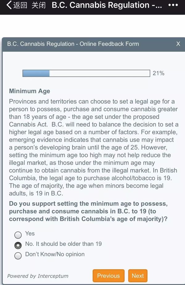 BC省政府网站大麻合法化的问卷调查【11月1日截止】(请参考样卷)