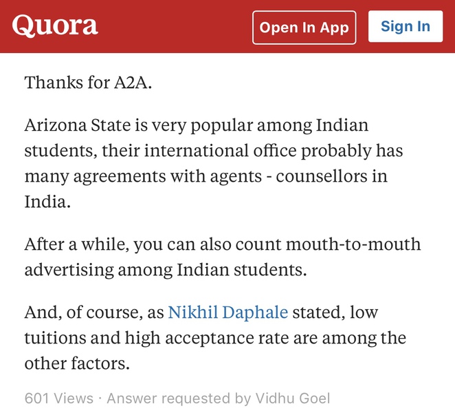 第一,亚利桑那州凤凰城有很大的印度社区,原因是亚利桑那州立大学吸引了很多印度学生。ASU为啥这么多印度人?因为据说ASU的计算机专业是第一流的。而印度人为啥计算机专业这么强大呢?印度人自己齐刷刷回答说:爸妈推得厉害,印度人认为小孩子的本份/工作就是学习,所以所有小孩子都应该专心学习。如果爸妈推娃的结果发现数学很好,就直接去学计算机专业。