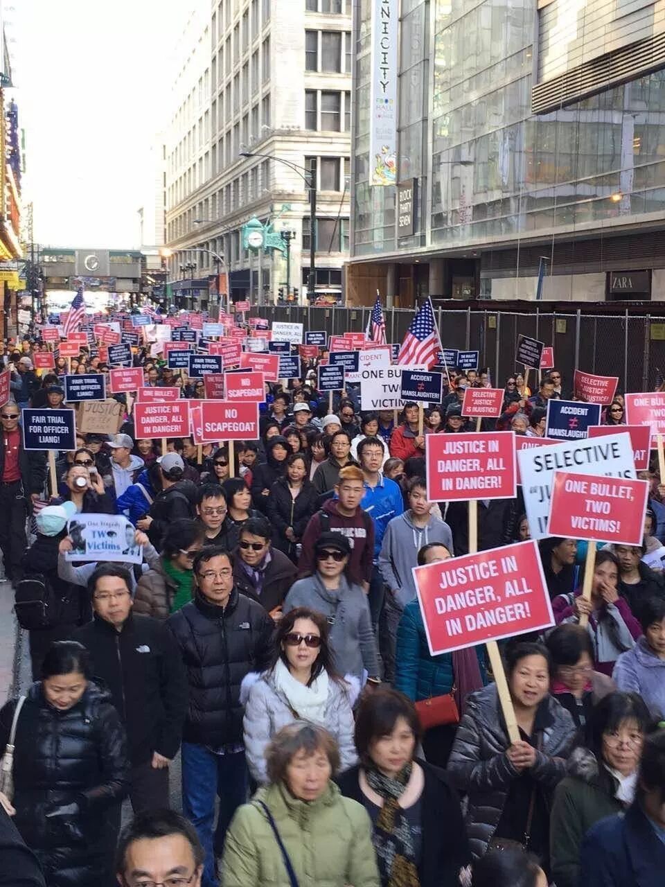 图4. 2016年2月20日逾5000名芝加哥华人走上街头,声援支持梁警官