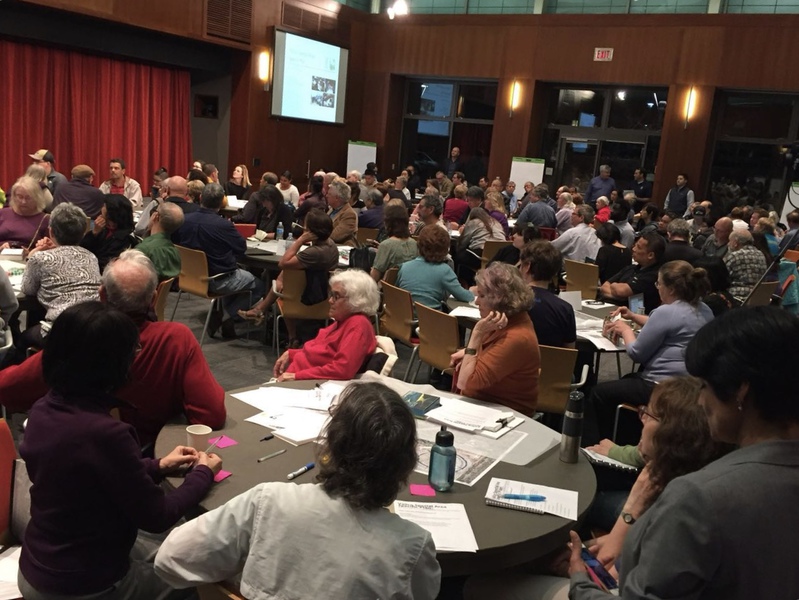 off meeting。現場還有開發商Sand Hill資助的民意調查活動,號稱他們在設計Vallco新項目的時候要廣徵民意。