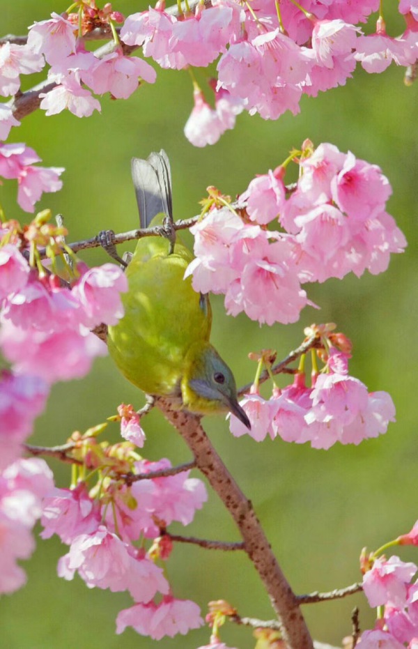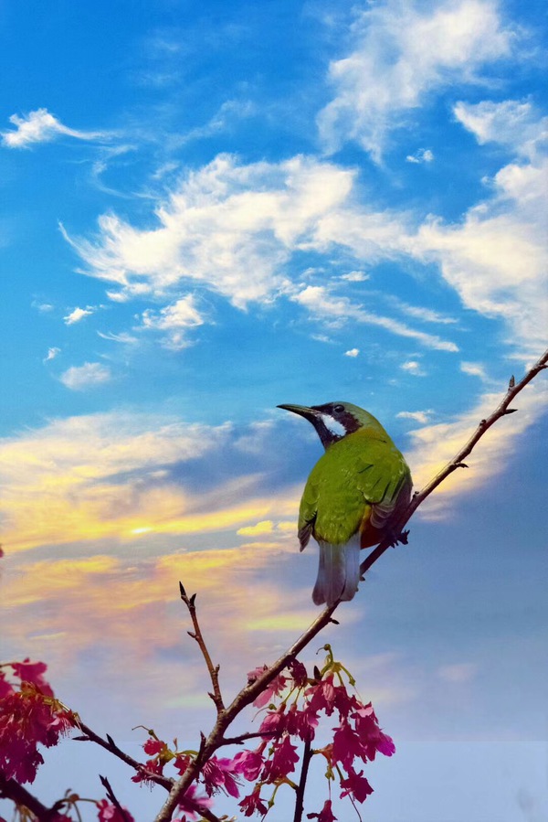 鳥向花傾訴。