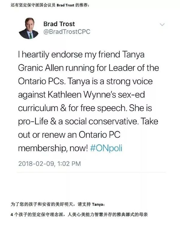 唐雅(Tanya)在Totonto Star的民调中显示高达40%的支持率,远远领先于其他几位候选人。说明了越来越多的加国民众意识到社会保守理念的重要性,体现了加国人心所向恢复正常传统的社会趋势!