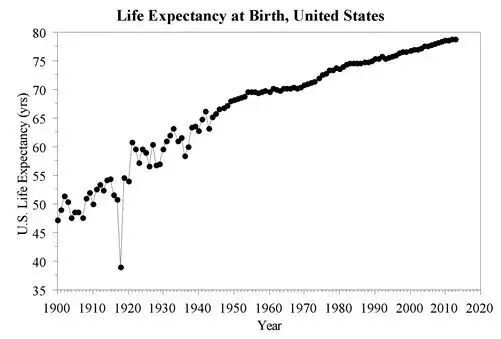 1900年,美国人均期望寿命是47岁,中国数据暂缺