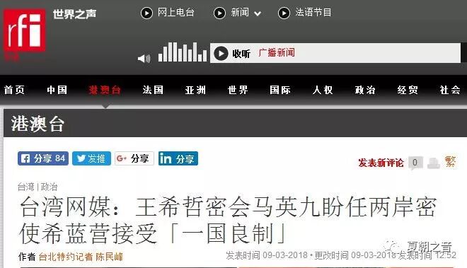 另据台湾接近蔡英文的人士透露,蔡英文曾指示台”国安“相关部门,可听听王“一国良制”的观点,但仍然要严正表达坚持反对被中国吞并,拒绝承认九二共识、维持现状的立场。