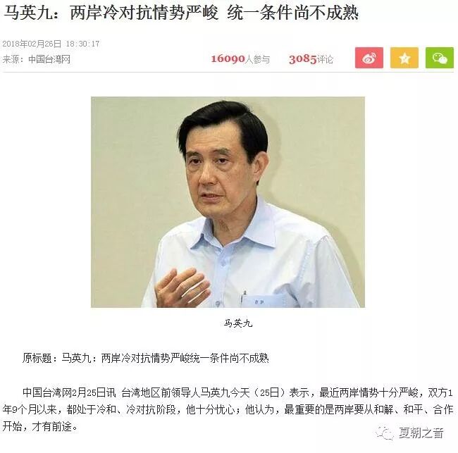 就在今年2月25日,马英九还对媒体公开说,两岸统一条件还不成熟。现在却在私人场合,做如此表述,难道是吐露真言?