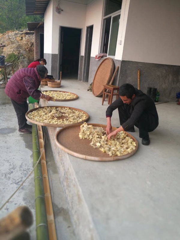 剥皮晾曬焙薰蒸,揮汗換來家富足。