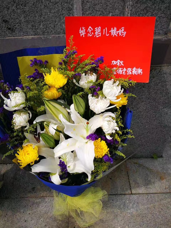 我在群里脸皮是最厚,也大胆请表姐夫代劳,献上深深地缅怀之情,其实我要说的是,这束鲜花其实代表着我们海外众多梁家第三代第四代对十七姨妈的共同的怀念敬仰之情,只是他们没看到这个信息或者他们没有老张脸皮厚提出这要求..,但我相信大家的心情是一样的,因为我们是一家人,我们大家都有这个心愿表达..。所以在这里要再次谢谢子杰表哥夫妇,子曼表姐夫妇。