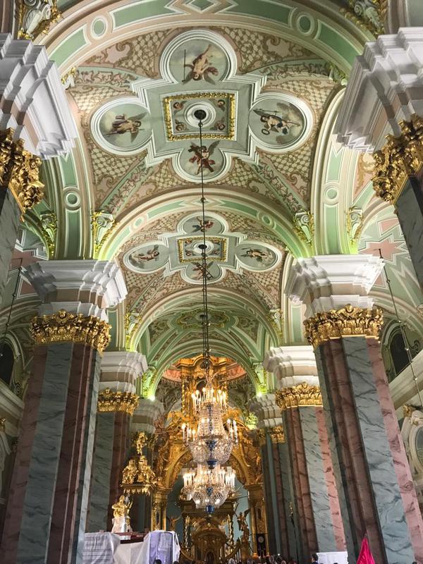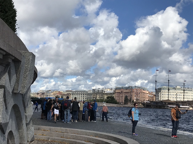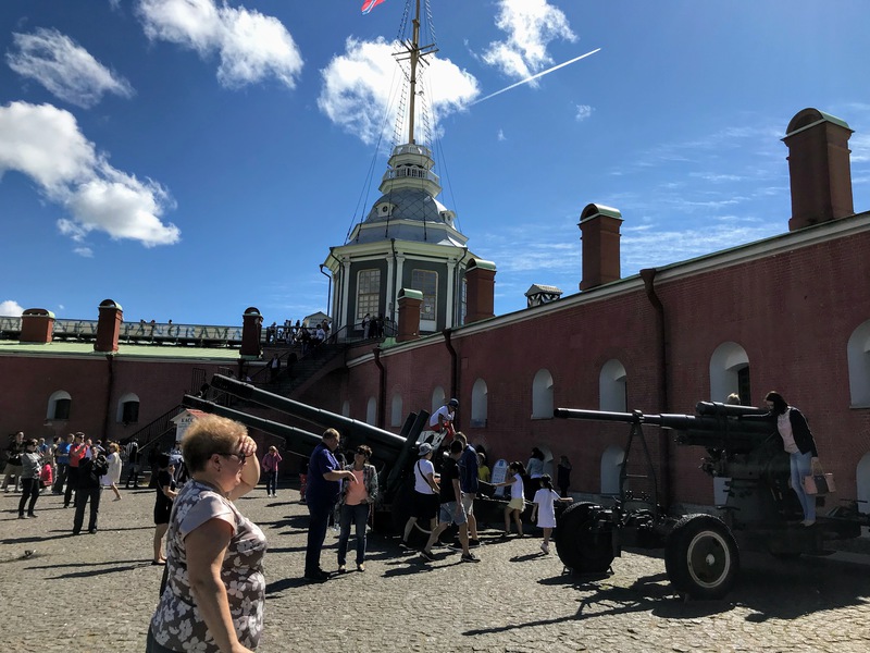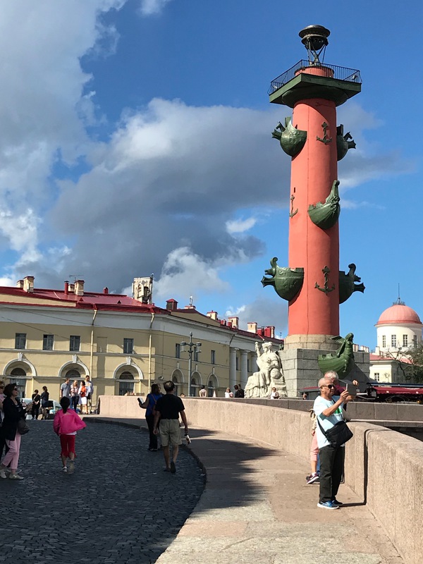 一水之隔的冬宮巍巍矗立,顯示聖彼得堡獨有的皇室貴氣,周圍有股票交易所、國立彼得堡大學、列賓公園、美術學院等。島上聳立一對華美的古戰船記念柱,平時為燈塔、節日放焰火。島上尚存舊時要塞的火炮,每日依時為守島士兵鳴放起床、吃飯和睡覺時間。至今正午12時準時發射震耳欲聾的一聲巨響。彼得保羅教堂是士兵主日做禱告的殿堂,地下乃歷代皇室的墓園,九十年代末被蘇聯殺害的尼古拉二世及其家人的骸骨也收殮於此。建築群體壯麗恢宏壯琳瑯滿目。