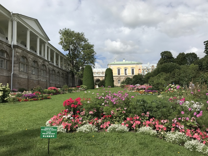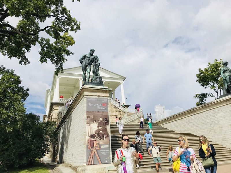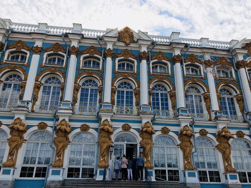 嘉芙蓮夏宮(普希金城)是彼得大帝為嘉芙蓮皇后所建的夏宮。皇帝為了娶這個村姑將元配母子送進修道院。皇帝死後嘉芙蓮一世繼位,之後他們的大部分子女陸續夭折,希望當賢妻良母的三女兒伊麗莎白兩次相親失敗,雖不至當剩女,結婚後卻沒有子嗣。這個奢侈的主兒將夏宮擴建不止兩倍。