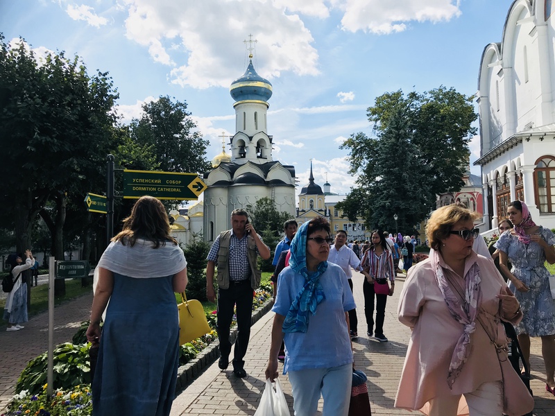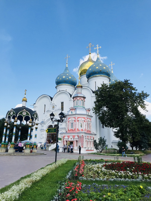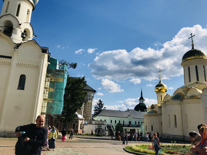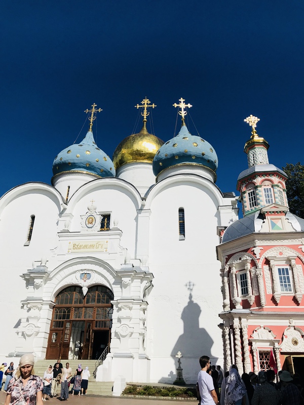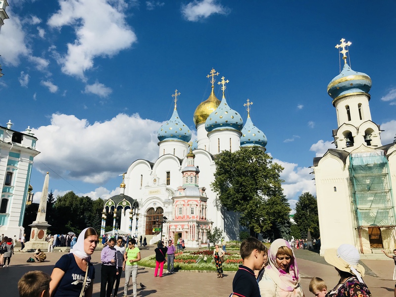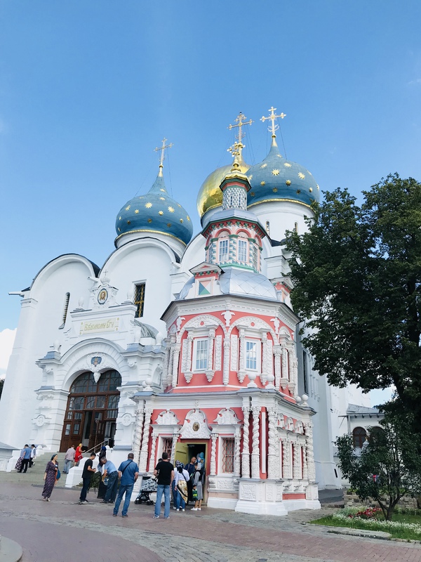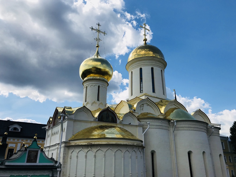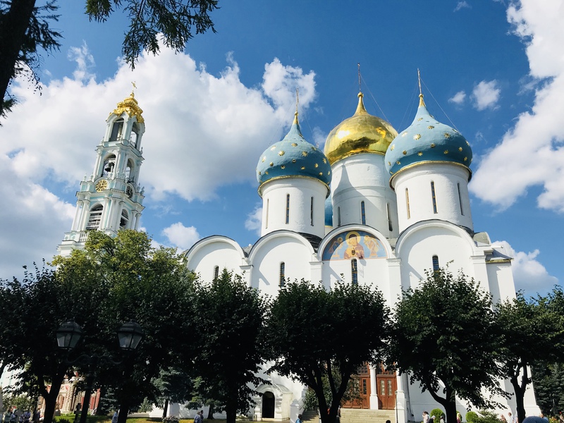 謝爾蓋三一聖大修道院坐落在風景如畫、建築獨特的同名小鎮,距離莫斯科東北約70公里,它是俄羅斯最古老的大修道院之一,由三聖教堂、聖母升天教堂、小禮拜堂、沙皇宮殿、88米高的鐘樓組等建築群組成,著名的三聖教堂建於1423-1442年,是俄羅斯早期白石建築藝術典範。院內還設有莫斯科宗教大學和神學院,時見身穿黑袍的年輕修士和修女。