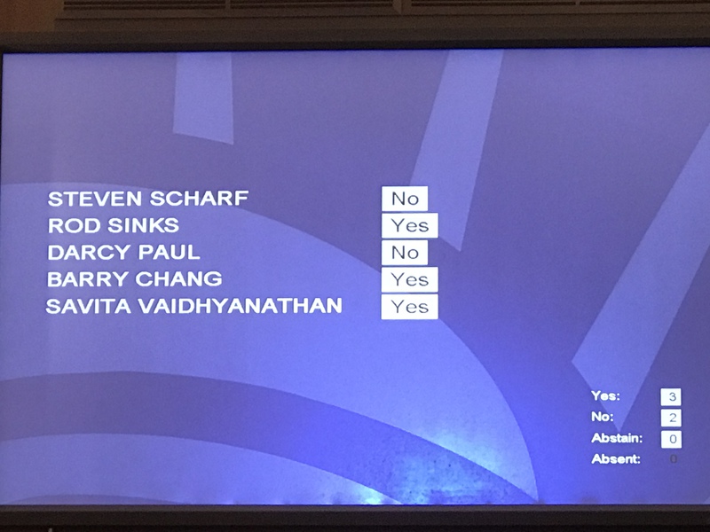 在18日会议讨论过程中的“市民”发言阶段,有将近100人发言。可笑的是其中支持此建案的大多数发言者都是来自三藩,伯克利,甚至San Ramon,明显是受雇于开发商,拿薪水来捧场。Vallco开发商Sand Hill公司的老板Peter Pau也亲自到场督票。最后项目3:2通过之后,开发商支持一方的成员热烈欢呼,弹冠相庆,其中包括正在竞选市议员的华人候选人魏虹 Hung Wei。虽然她在跟市民接触时,多次强调自己的亲民做派,一定会聆听市民呼声。可是在历次Vallco开发会议上,她罔顾民意,支持在Vallco兴建几千公寓,支持超高密度项目的立场,早已暴露无遗。