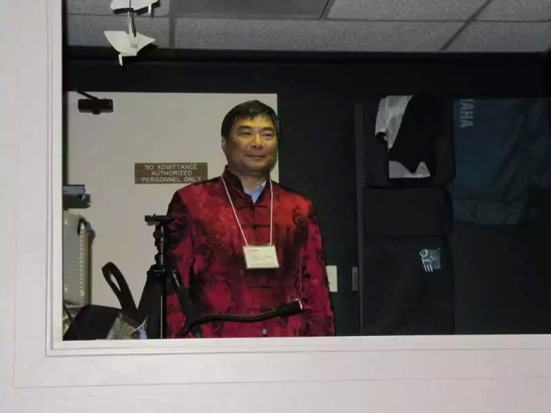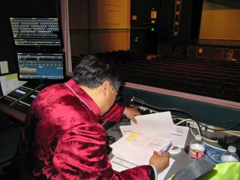 Daqun Wang 总是那么认真准备灯光,保证舞台上每一个节目的绚丽多彩.
