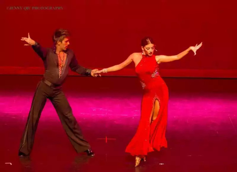 CACC 拉丁舞老师Hunter Stephens曾多次获得世界舞蹈大赛的奖牌, 他的妹妹Killian Stephens 是外州一家著名歌舞团的独舞演员.他们这次联手演出的"西班牙斗牛舞",动作相当舒展、激烈,雄壮威武的舞蹈风格和刚劲十足的音乐配合非常一致,充满了力与美,把晚会推向另一个高潮.