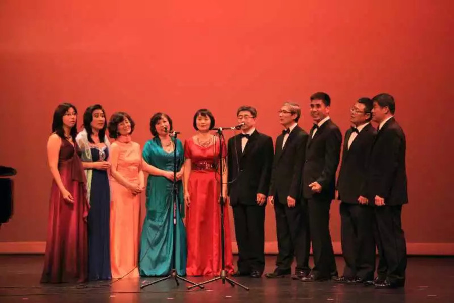 著名歌唱家和指挥家谈柏年先生再次登台指挥CACC 女生合唱组合, 她们优美的歌声让观众如痴如醉.