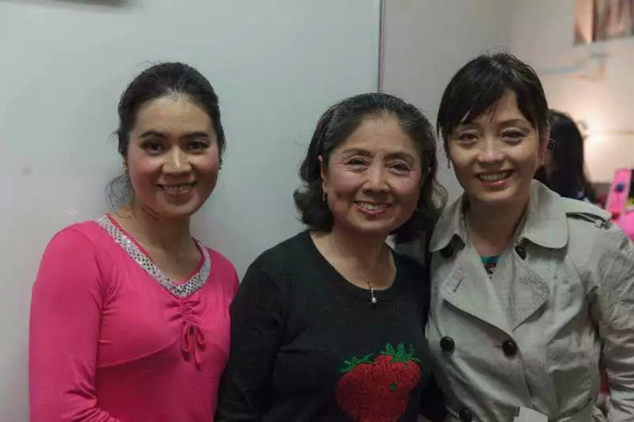Jessica Liu(右)不辞辛苦,也为晚会拍摄了大量精美的照片。 她与李国英老师(中), Monica Mo 合影。