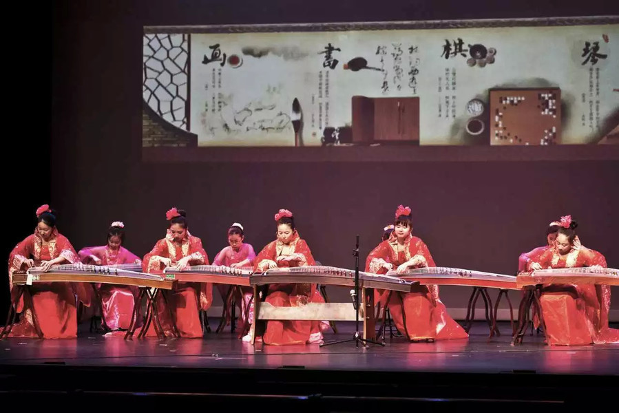 著名古筝演奏家 李欢老师悉心指导古筝班学员, 她们合奏《月琴》, 音色优美,音域宽广、演奏技巧丰富,具有相当强的表现力.