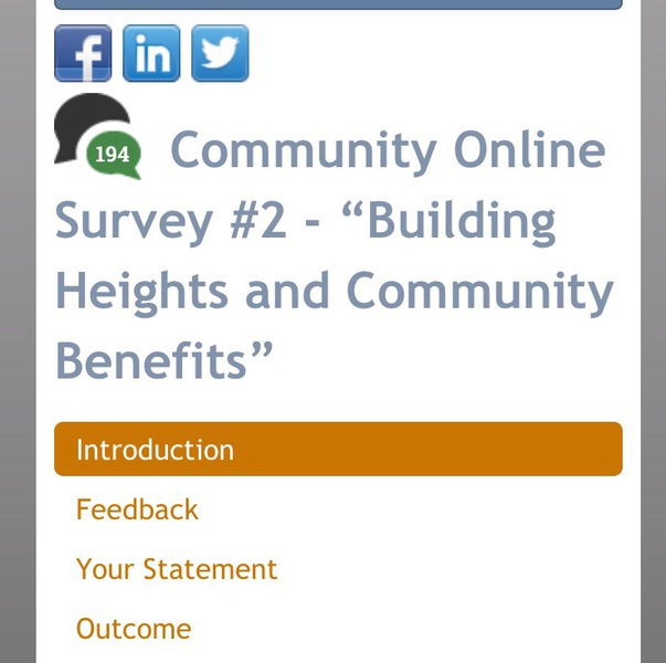 具体的民意调查在 Community Oline Survey #2 -- "Building Heights and Community Benefits" 那里。或者直接点击以下链接: