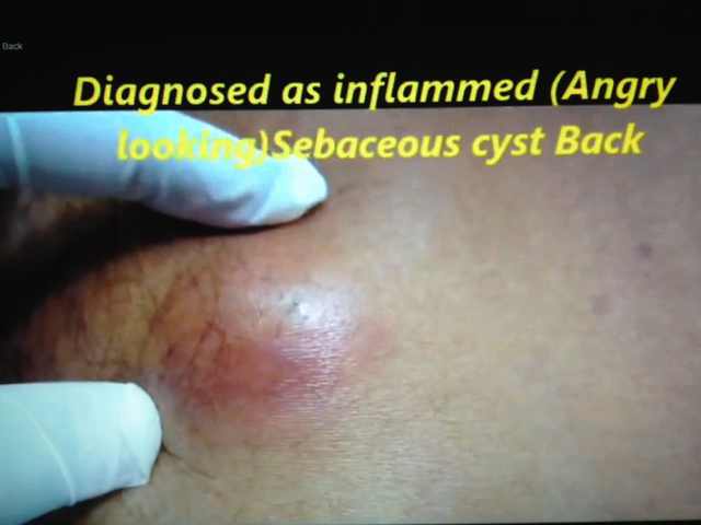 图片上的cyst 不是我的,是YouTube 上找到的。我背上的cyst样子性感娇艳多了,比鸡蛋大,光滑明亮,伴随我四年。四年前第一次发现背后有个豆大的小包,叫陈先生看。他用放大镜看半天,说:嗯,恭喜你,你长了一个cyst. 我听了后,开始翻书了解cyst, 说它是囊肿,要剝离內壁膜,才能根治!我还没有决定要对它下手,它就消失了。然后,春来,夏至,秋去,在初冬,背上开始鼓起一个小包,用一个月长到葡萄那么大,我给它取名叫"金庸",因为那段时间我迷浸于武侠世界,读着金大师的小说。金庸在我背上爬了几周,又消失了。第三年的冬天,金庸重返我身上,它就不开玩笑了,长得有乒乓球那么大,12月中穹起来的,二月底才流脓,发炎,起义失败。我没有去看医生,怕刀。将头埋进沙里,以为没事了。