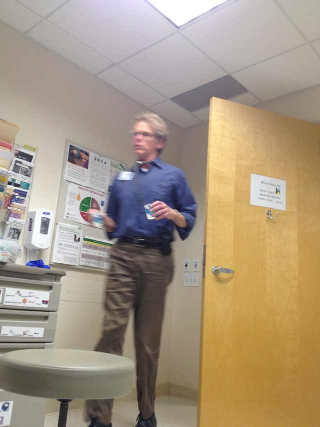 我悄悄拿稳手机,等Dr. Thomas Wisler 进来。我旁边坐着陈先生,他把自己的病人取消掉,来陪我换药--我的背上有个大洞,威斯勒医生要教他如何往洞里填棉纱。他很疲倦,很耐心。