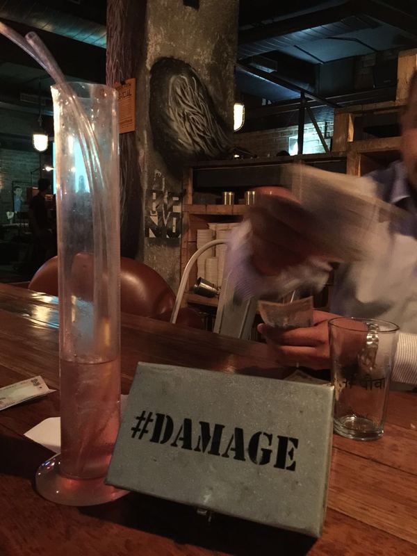 酒足饭饱之后的买单环节非常有新意。复古铝制bill box上赫然印着斗大damage。真不知道伤不起的是荷包,还是体重。