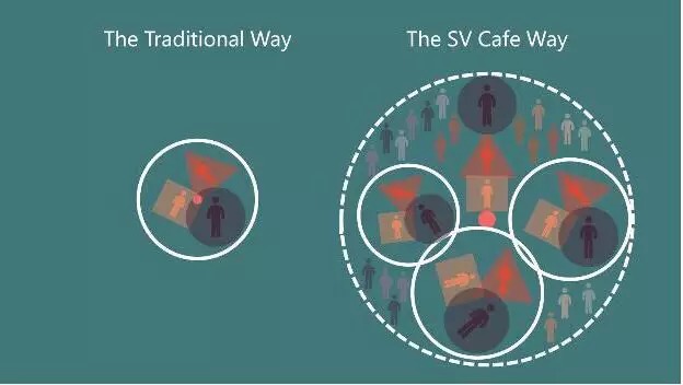 【硅谷食堂】(SV Cafe)是一个众筹社交平台,以“公共食堂”为理念,旨在实现机会和人脉的对接,帮助各界人士和职场新人在硅谷立足、成长、创新。我们试行一个月,聚集超过三十个主题群四千人,是近来硅谷最具人气的新生事物。硅谷食堂现正准备以众筹的形式成立,实现我们平等开放去中心化的理念。