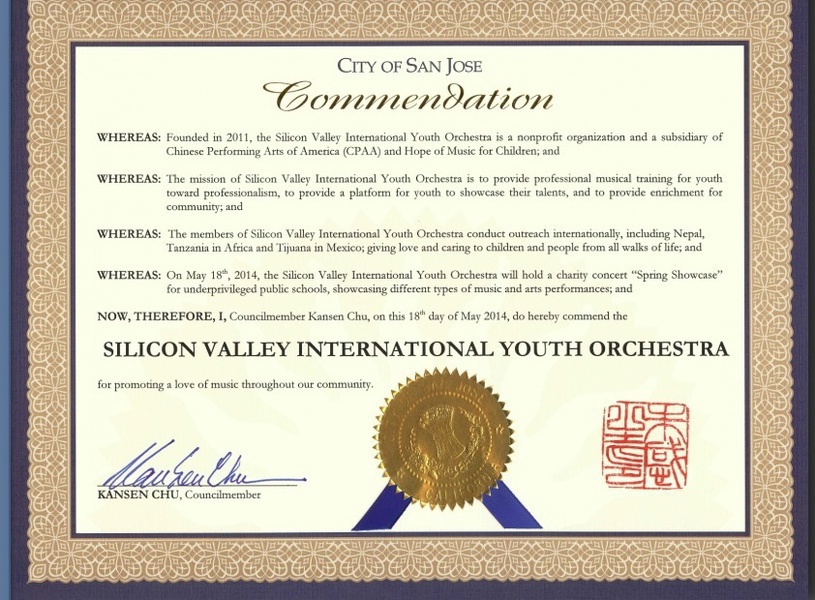 Silicon Valley Youth Orchestra (SVYO) founded in 2011, is a nonprofit organization and subsidiary of Hope of Music for Children Foundation. The mission of SVYO is to provide professional musical training for youth, to create a platform for the youth to showcase their talents, and to foster musical and cultural enrichment for the community. SVYO also dedicated to improving children’s educational issues through music. Over the past couple of years, SVYO has provided educational opportunities for unprivileged children and conduct outreach to international locations, including Nepal, Tanzania Africa and Tijuana in Mexico, giving love and care to children and people from all walks of life.