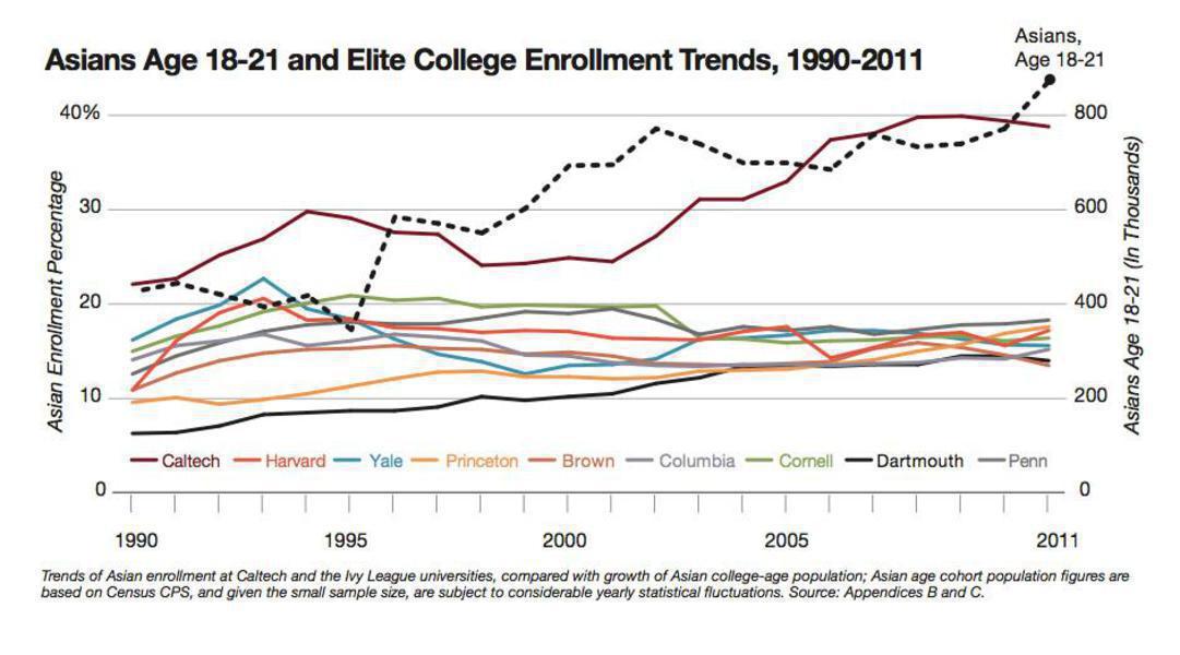 "The data Unz has compiled shows that while the number of college aged Asians has increased dramatically, their presence at top schools has shrunk or remained flat."
