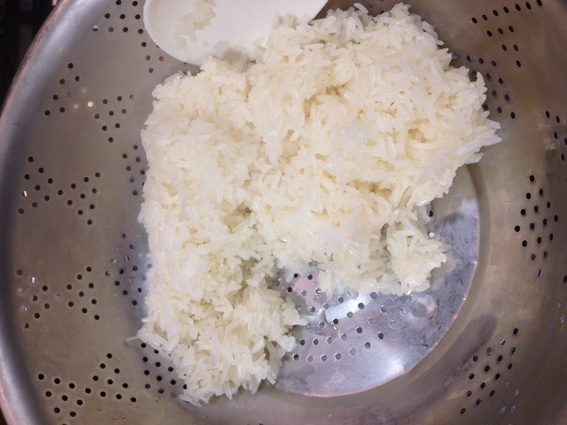 一旦糯米蒸熟,怎么冷却也是有诀窍的。如果放在锅里,糯米会被余热捂烂掉。如果开盖等风干,表面一层糯米会变干硬,酒酿里面出现一些干颗粒的糯米,吃起来非常不舒服。最好的方法是,立刻把糯米盛到一个带漏洞的筛子型容器中,然后用凉水冲。不用冲太久,手摸着下面出来的水到达体温就差不多了。再晾一会儿,很快就能到达室温。如果糯米不凉到室温,制作出的酒酿很容易发酸失败。