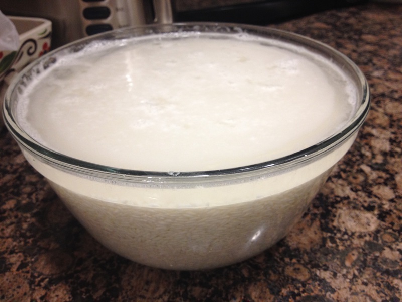 夏天的时候,用保鲜纸蒙在大圆碗上面,室温阴凉处放三天,酒酿就好了。春秋天,我是把酒酿放在烤箱里面三天。在冬天比较麻烦些,需要用一个毯子,毛巾之类的包起来这个碗,然后放入烤箱存放,以利于保温。如果三天出酒量还不够,可以再多等一天。