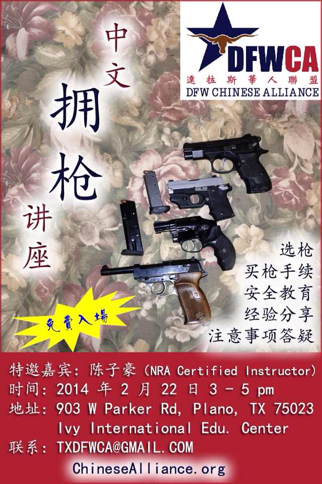 关注华人安全 达拉斯华人联盟举行合法拥枪中文讲座
