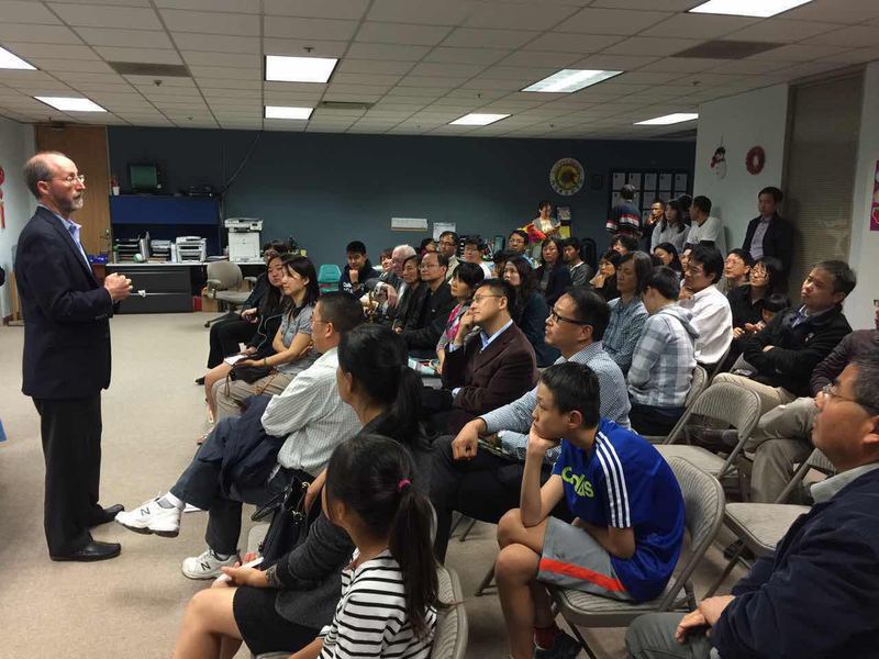 在见过他的竞争对手以后,三谷华裔选民终于盼到了跟Steve Glazer见面的机会。4月22的晚上,通过SVCA的策划,近70多人来到向日葵课后学院,近距离接触这位SD7 special election候选人。