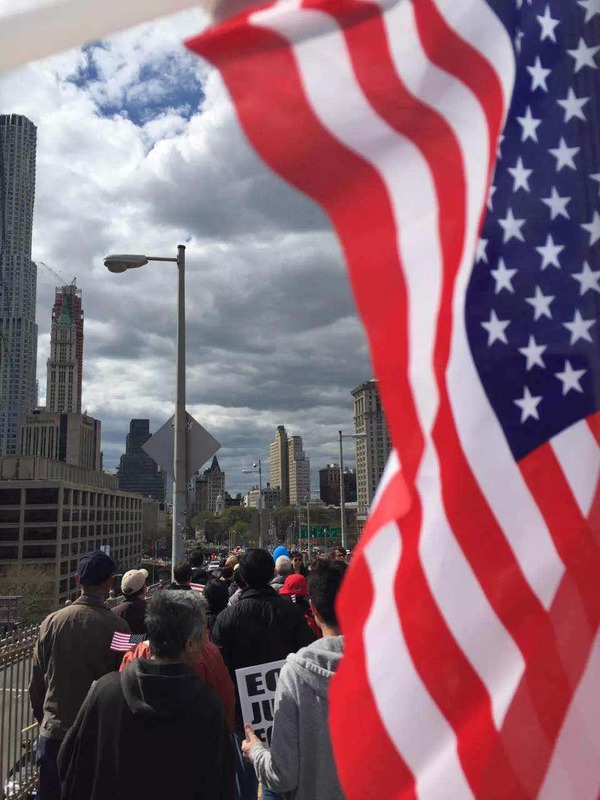 亲爱的朋友,4月27号的太阳即将在黎明升起,我急切地等待着着她在东方升起,因为她点亮我们的内心,照耀我们的未来,激励我们的前行。还记得一位诗人的回答么?“新的转机和闪闪星斗,正在缀满没有遮拦的天空。那恰似人类数千年的象形文字, 那是未来人们凝视的眼睛。”我站在彼岸,噙着泪眼,仰望天边我生活了二十多年第二故乡,呼唤我曾经站在一起兄弟姐妹:大家坚强地走下去,走过百年Brooklyn 桥-为了公平正义、为了梦想、和明天。让我们的每一步走得更坚实,而我将会永远和你们走在一起!