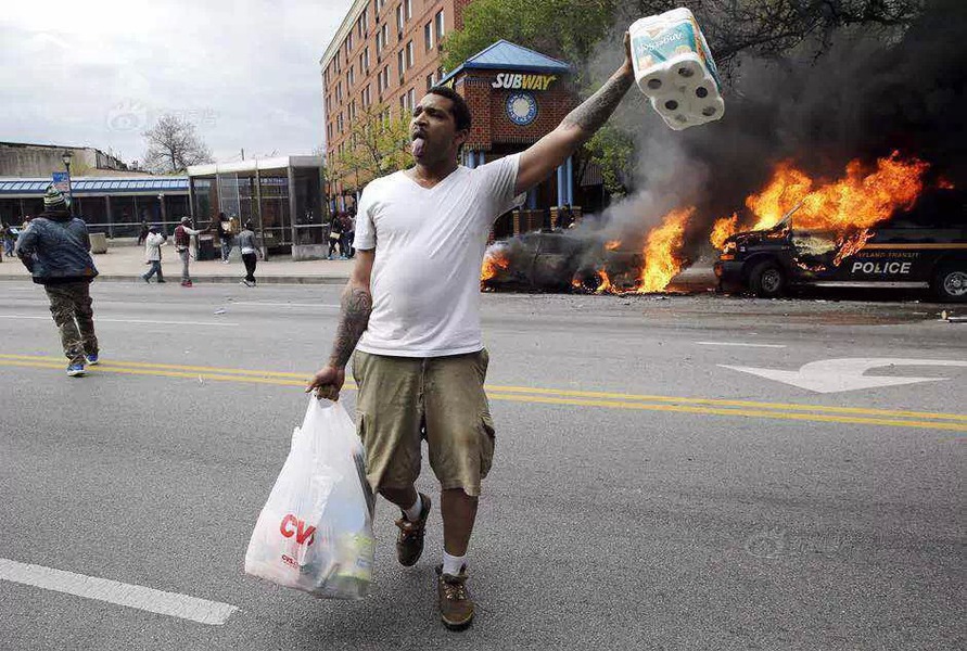 民主美国的凄凉,由巴尔的摩见证:抢包卫生纸,欢天喜地回家去