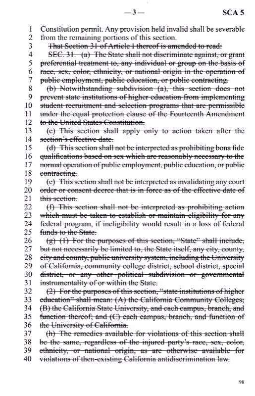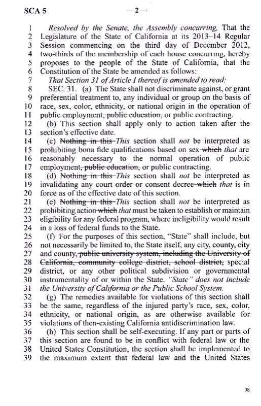 臭名昭著的加州宪法第五修正案SCA-5 原文扫描 🌟策划谋略 华人权益 anonymous-114 02/24 10644 4.5/120 http://www.weidb.co/p1699 获取作者更多文章 上一页 下一页 1. 请记住这一天,3月17日,在美华人的一个里程碑!...(17913) 2. 6月3日,华人草根改变加州政治版图(29299) 3. 从SCA5提案看中国人参政议政 孙燕(21820) 4. 组织组织组织,善民铸成雄师;自强自强自强,心防胜于城防(13458) 5. 驳《我赞成SCA5》 - 高分子怪物(15431) 6. 在反对SCA5大潮中湮没了的组织边界(17853) 7. 今天,我骄傲(15219) 8. 加州选举指南大汇总(14715) 9. 长青谷绝代双娇齐上阵 对诗呼唤投票与入籍(23844) 10. 人生能有几回真?(16505) 11. 浪淘沙·把酒谢义工(16476) 12. 反SCA5 D27区群“九张机”(13583) 13. 【CivilRights号召】放下争执,互相捐款,情义相挺,共克恶法(12757) 14. 亲,这一次选举投共和党,真的还需要理由吗?(20126) 15. 严厉驳斥按肤色定义教育多样化的种族主义思维(14382) 16. 用数字剥开AD16区“曲线投票策略”的伪装(16780) 17. 一切为了孩子(14400) 18. 臭名昭著的加州宪法第五修正案(SCA-5)(9475) 19. 臭名昭著的加州宪法第五修正案SCA-5 原文扫描(10644) 20. 再推 No Skin Color Act(10854) 21. Opinions from Xiangming Yu towards SCA 5(10222) 22. All Asian Americans: switch to Republic(10478) 23. 由加州SCA5看AA平权法案及亚裔的应对策略 (转载)(29483) 24. 用来团结非华人反对SCA5的几个理由. --by fools (加肥猫)(13053) 25. SCA5敲响了警钟,老中要做长远打算了--xlzero(15050) 26. SCA5: 加州可能再次制定种族歧视宪法 -- 岳东晓(13347) 27. SCA5,加州地区要重点盯住的民主党议员(15838) 28. 平權措施又叫板 亞裔該沉默?(張越)(11763) 29. SCA5:加州孩子们已经到了最危险的时刻,我们必须发出最后的吼声...(105649) 上一页 下一页