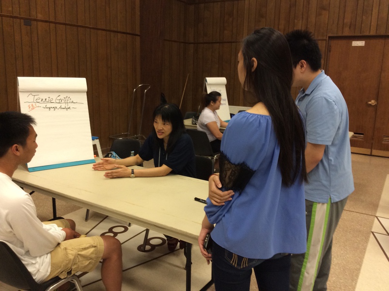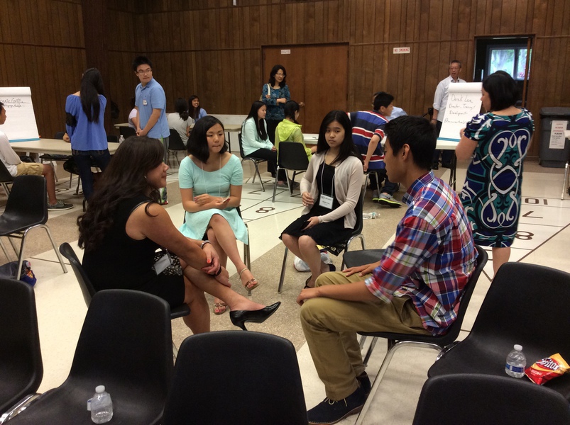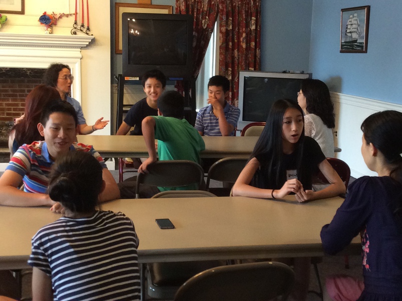 下个环节是一对一交谈,学生们轮换和facilitators沟通,其他人反馈。一对一训练的facilitators 有 educators, FBI language analyst, professors, professionals, from Millburn and OCA-NJ。因为人多,高中生在主会场,初中生在另一间会议室。时间过了很久,这些平日里塞着耳机嫌父母唠叨的挺爱搅竟然谈得停不下 (视频中的对话内容不清晰,也不是关键点了)。