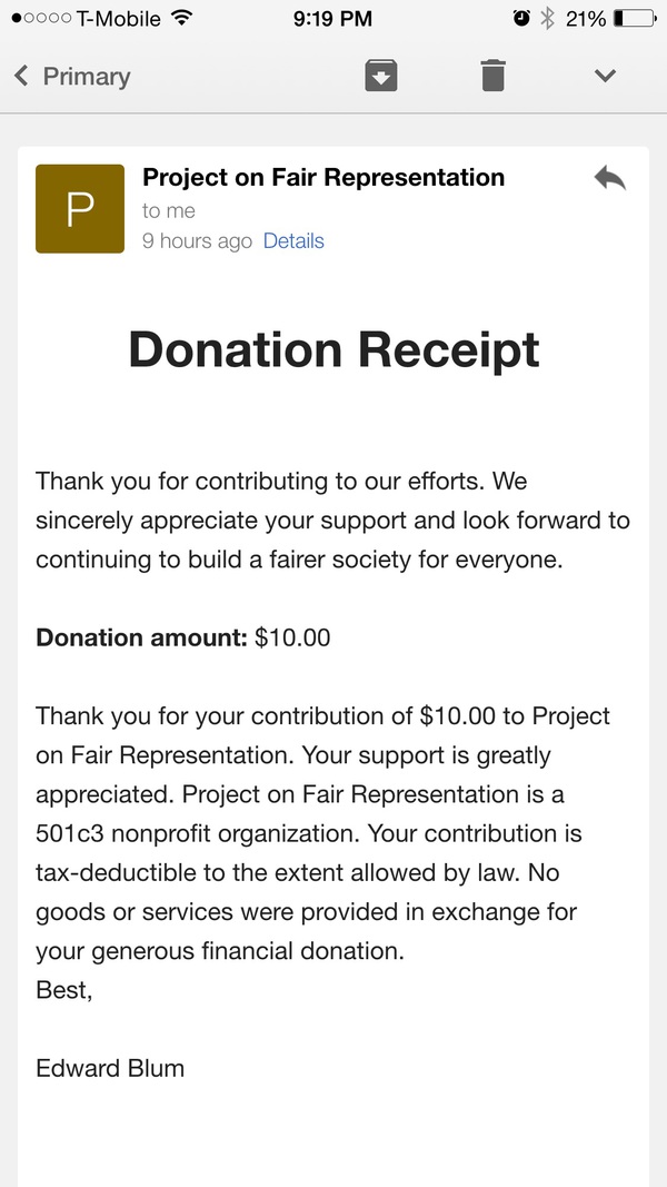 根据5/30与Blum现场沟通结果,除了SFFA注册人数,他还希望看到更多捐款人。钱不在多,每人$5或$10即可,关键是捐款人数!如果昨天加入的人有1/10去网站捐了$5/$10,Blum就可以拿1000+ Donors去跟Harvard叫板。