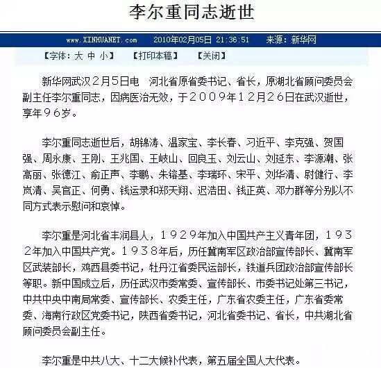 “我爸从解放以来,在武汉、广州、海南、陕西、河北等盛(省)市都是领导干部,有些地方还是‘一把手’,在最后任职的河北省,还是‘一肩挑’(省长、省委书记),可我们家兄弟姐妹没有安排一人当个官。我算是沾了他的光,按组织上的规定,他应有一个生活秘书,我是他女儿,就成了子女中唯一的“副处级”。我曾问我爸说,‘人家省长的秘书起码是正处,你向组织部门打个招呼吧’!我爸说:‘我李尔重一生没向人低过头,打这样的招呼/本来我想顶撞他一下:‘这院内谁谁谁,不都是正处,副厅的么/可是,我不敢讲出口,怕惹他生气。”