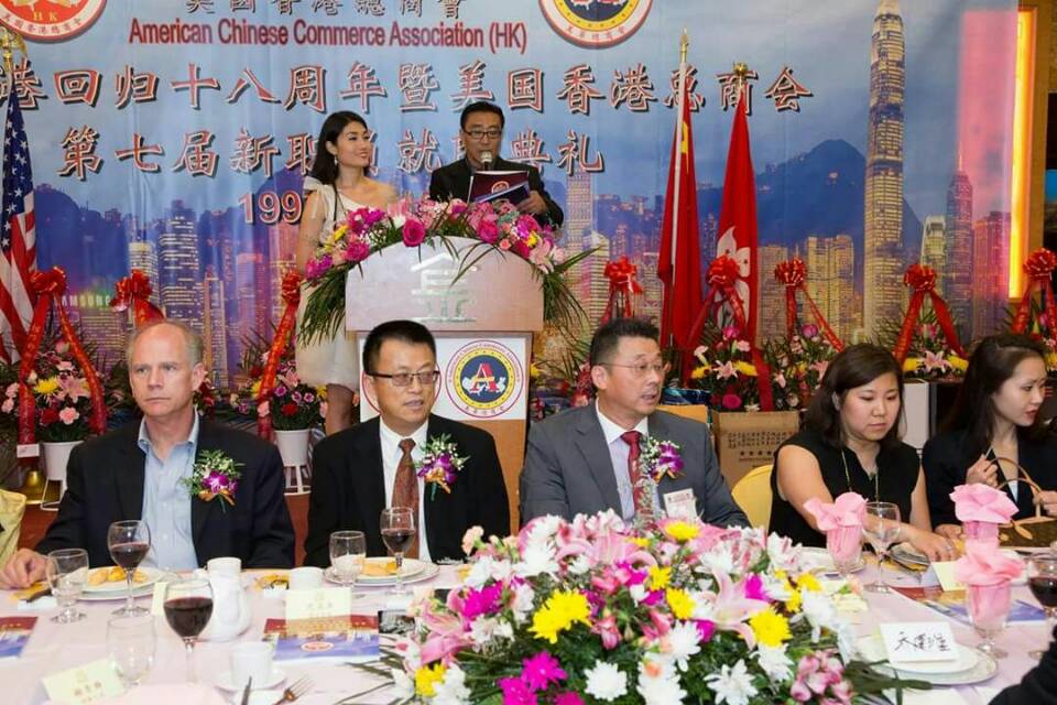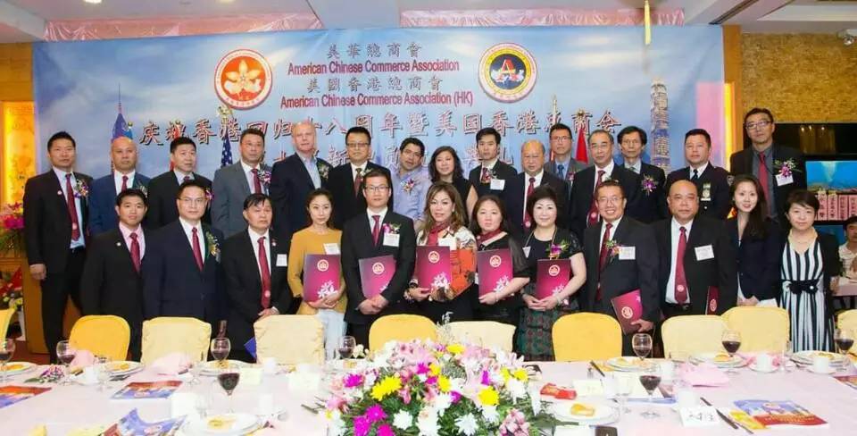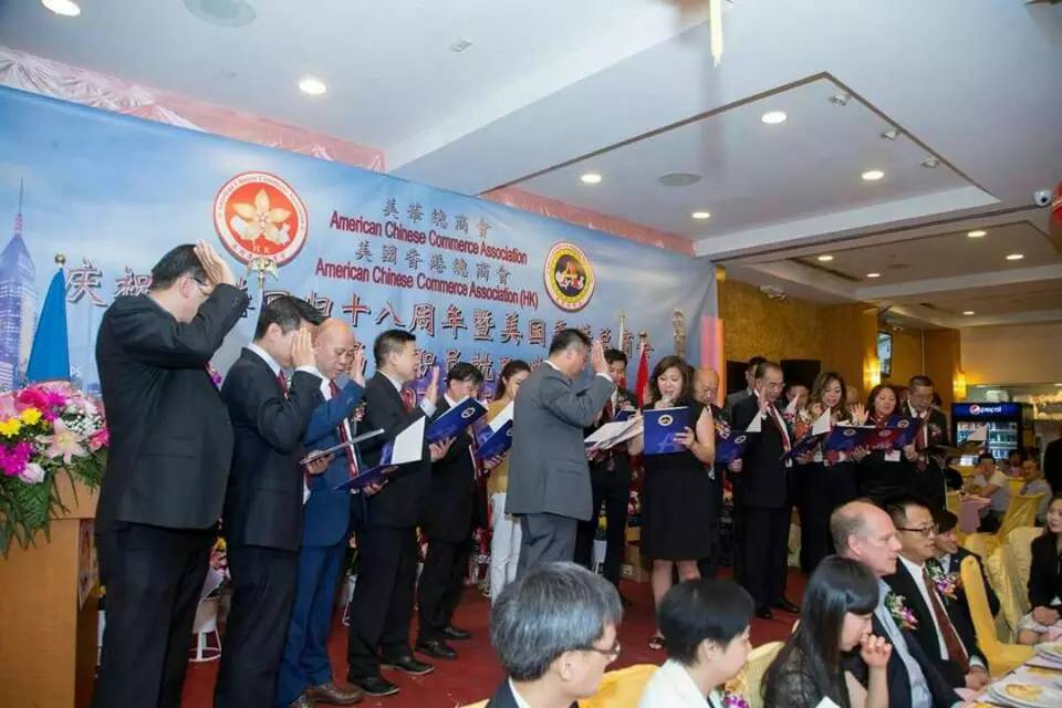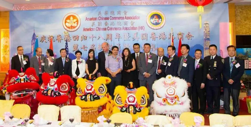 【侨报记者宋旸6月19日纽约报道】美国香港总商会19日在布碌仑举行庆祝香港回归十八周年暨美国香港总商会成立十八周年及第七届新职员就职典礼联欢晩会。
