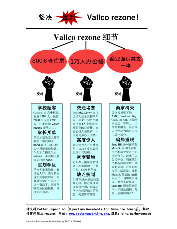 保护学区,保护市民,反对库市Vallco rezone求捐款!