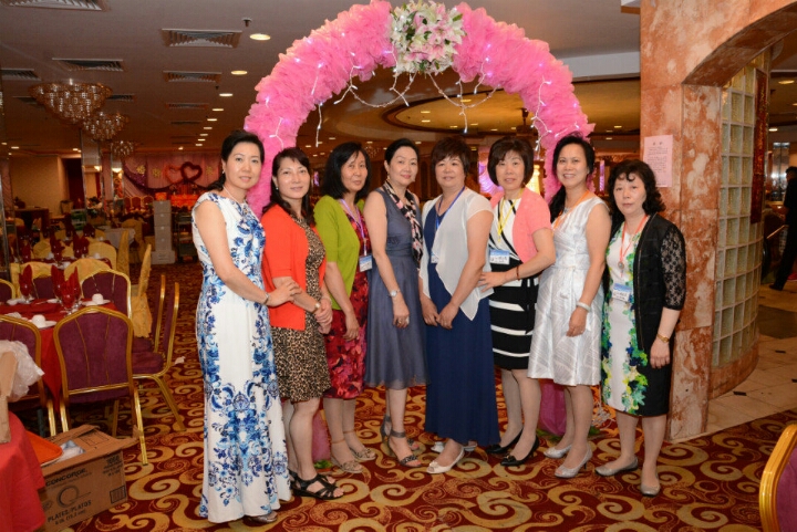 上图;几位女同学与女嘉宾在会埸口留影