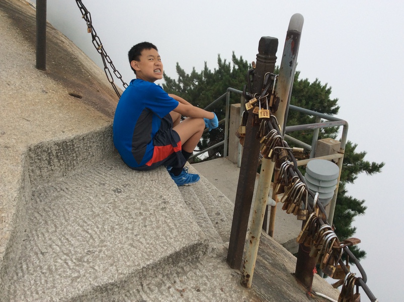 We were walking towards West Peak to go down the mountain on a gondola, when Mom wanted to go to the 长空栈道 at the South Peak. It was a 30 cm wide wooden walkway nailed onto the side of a cliff, like 50 bloody miles off the ground (pun not intended, but it kinda is). I had already seen pictures of it before climbing the mountain, and it was CRAZY!