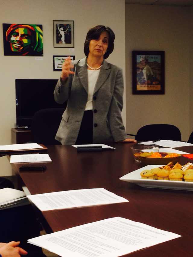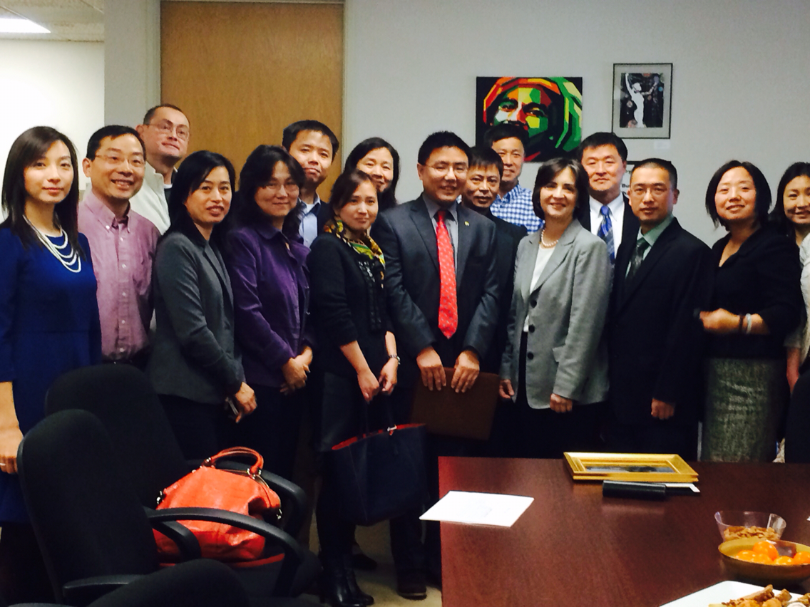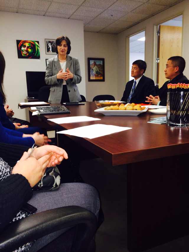 到了Joan 的办公室她和助手非常礼貌地和大家一一握手,她的staff 还为大家准备了水果和甜点。我们共有二十一位代表参加会面。由于名额有限好几位朋友都谦让把名额让给自己的外国朋友以增加diversity 和说明力度. Holly 请来两位印度同事太给力了