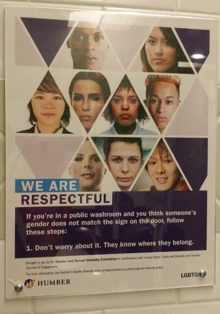 那么,看看执行了厕所法案的地方是什么样子?参考文后附录的LGBTQ组织贴在加拿大安大略省某女厕所外的海报,大意是:“如果你在女厕里觉得看见了不该进入的人,你该怎么做?正确答案是:懂得包容,懂得尊重,不要紧张,坚信这个人没有进错地方。”请问读完之后,你是感动,还是无奈?对于会保护自己的成年人来说,也许还可以选择容忍,但是当这张告示出现你孩子的学校厕所门口时,你又会作何感想?