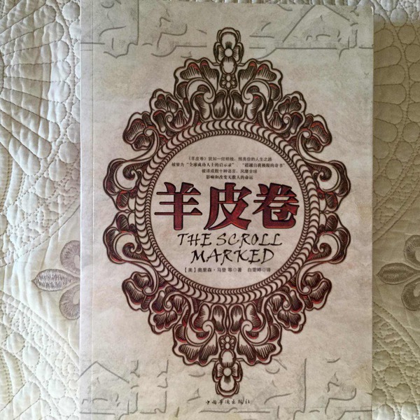我喜欢书。每次回国我都会买上几本,或者把家里的旧书带几本回去,这样的机会我怎能放过。我忙不迭地走上前翻看。这些书印刷精美,装订考究,我看得爱不释手。突然我眼前一亮,“羊皮卷”三个字映入眼帘,这本书我早有耳闻,一直想拥有,没想到在这里遇见了。我如获至宝,立刻决定买下来。上称一称,一斤六两,24元。书的定价是59元,低于半价,物超所值。还有很多好书我想买下来,但是携带它们远渡重洋实在是不便,只有万般不舍地放弃。