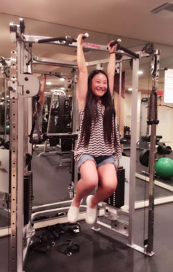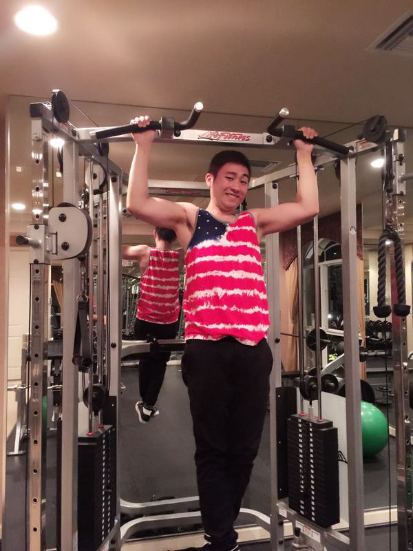 从海边回来后先去健身,今天和他一起做引体向上,他做引体向上是:胳膊是弯的,腿是直的,表情是痛苦的,用力的。而我做引体向上,胳膊是直的,腿是弯的,表情是笑开了花儿的。。。。。