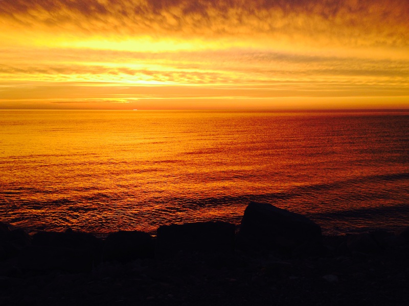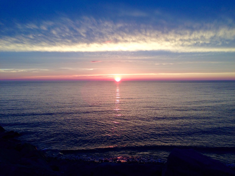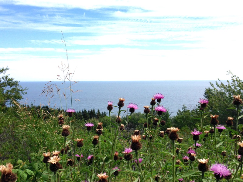 我们八月中旬去的时候,虽然是旅游旺季,但是路上车辆并不多,除了部分地段修路双行并单行之外,基本一路顺风。沿途风光旖丽,一面是郁郁葱葱的山丘,一面是浩瀚无垠的大西洋。据导航仪指示,三个小时可以开环形线一圈。酒店前台建议我们加一倍时间。结果我们中午上路,一路开开停停,还用一个小时左右沿小路拐到最北角Cape North探秘,晚饭时间到了Belle Côte,享用海鲜美餐,欣赏海上日落,就这样我们天黑之后九点多才转完了Cabot Trail全程。