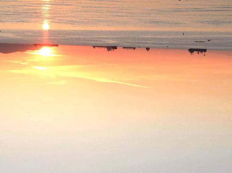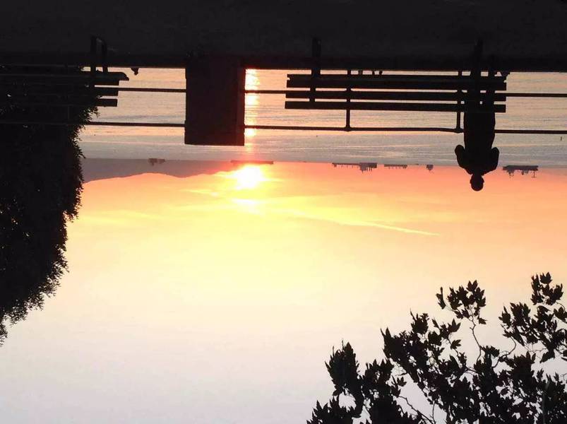 凌晨,迎著剛剛噴薄而出的朝陽,凝視,信任,只見明亮的圆盘變成了粉色光暈,渐渐的光線又構成一個明亮的七彩光的隧道,太阳在隧道的尽头,被紫红的光晕遮拦,在后面忽隐忽现。
