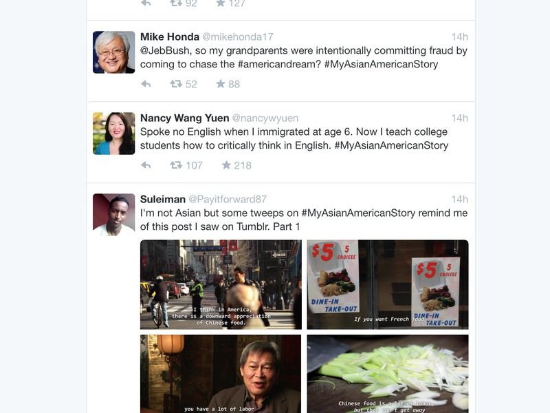 Student starts MyAsianAmericanStory in response to Jeb Bush Anchor Baby remarks: http://www.latimes.com/local/lanow/la-high-school-student-myasianamericanstory-anchor-baby-narrative-20150825-htmlstory.html